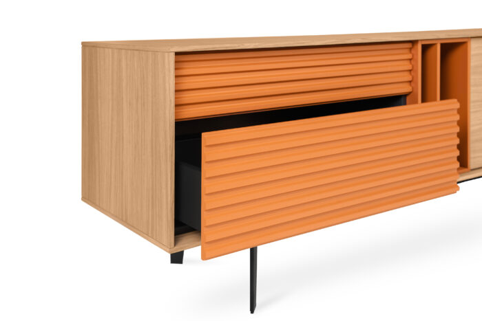 Cabinets are an important element in the Dignis office, and they are elegant and subtle. The Dignis collection includes low freestanding cabinets or those that can be leaned against your desk. Dignis cabinets are designed to store handy items or documents while decorating the room in which they are located. The design of Dignis cabinets allows for the combination of 3 different finishes in a very extensive color palette. The element that distinguishes them is the milled drawer fronts creating an unusual, enigmatic plane, giving the possibility to play with form and color.