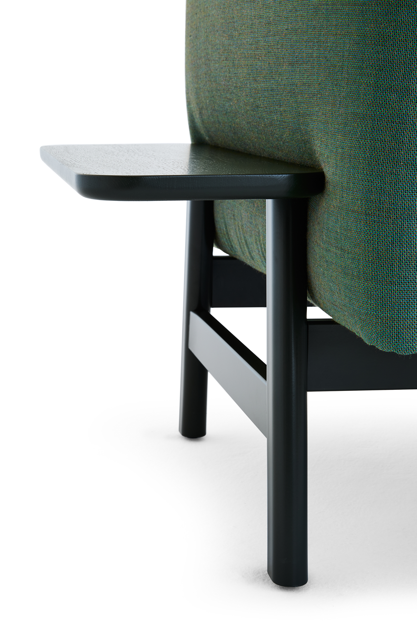 The lower, ergonomic armrest can be comfortably used in different positions (classical and slanted) for greater freedom of movement. The armrest also serves as a divider between two adjacent eats, thus creating private zones in a shared space where everyone can enjoy the comfort in their own way. The tall version provides an acoustic shield, making it a perfect choice for interiors such as open office spaces, where privacy matters and users need to stay focused.