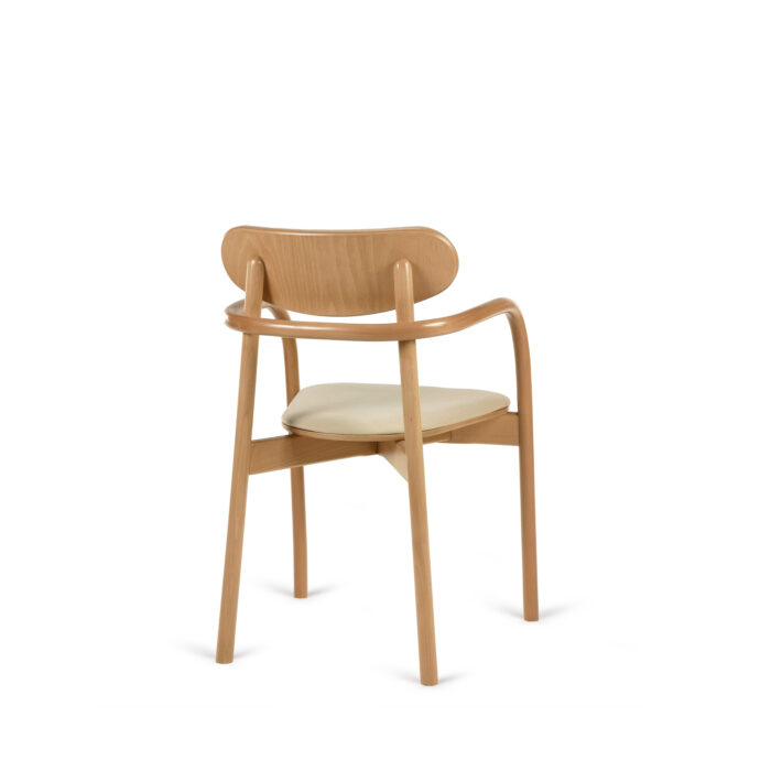 It is a modern armchair created with a unique XIX century technology of bending beech wood under the pressure and steam. LA BENDA fascinates with the subtleness of construction and feasts your eyes with harmony and incredibly gentle form. It seems light as if it was floating in the air. A beech rod, subtly bent in several places, is a characteristic element of the design. It plays a role of a lynchpin for both front legs of the chair and at the same time it supports the rear part of the backrest. The visual opposition – the legs in the back are straight and set firmly on the ground. The author’s vision for LA BENDA was inspired by the silhouettes of partners in a dance. We could assume that this contrast between these furniture elements is well presented by a woman. She moves daintily and then trustfully embraces her partner’s shoulders in their tango.