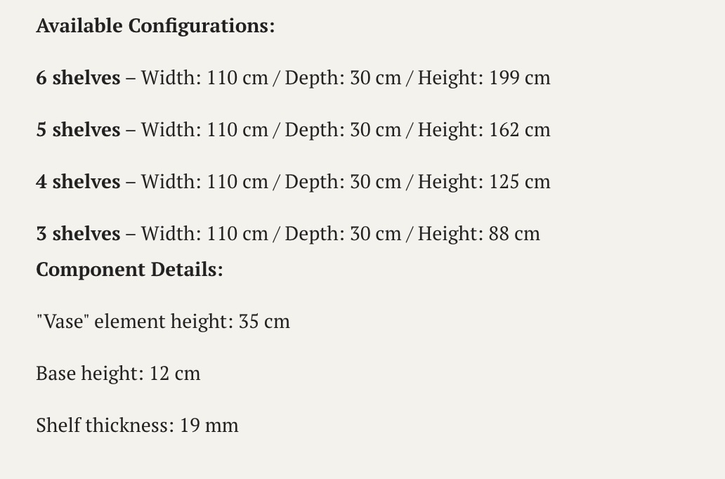 VAZOO is a modular shelving system built around distinctive, lathe-turned forms reminiscent of vases. These sculptural elements support the shelves while adding a bold visual accent to the overall design.